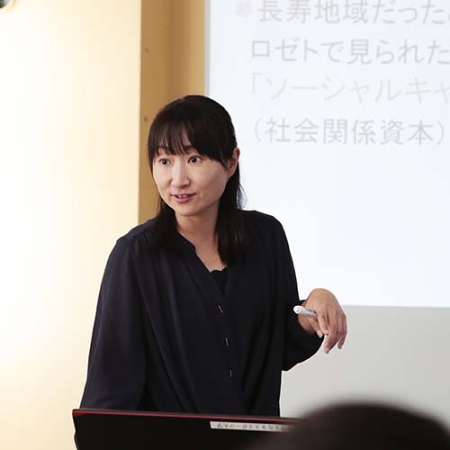 東日本大震災の後の人々の冷静な行動は、世界の人々に感銘を与え、また、「日本人はなぜあのような災害時に冷静な鼓動がとれるのか」という疑問の解明にも関心がもたれています。『ライフスタイル論概論』の授業では、ソーシャル・キャピタル(社会関係資本)という人間関係のあり方、人々の社会参加やネットワークに関する協調行動について取り組んでいきます。人や心のつながり方の研究がこれからの社会に役立てるようにしていくことを目標としています。