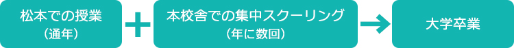通年の授業を松本で受講し、年に数回のスクーリングを本校舎で受講します。