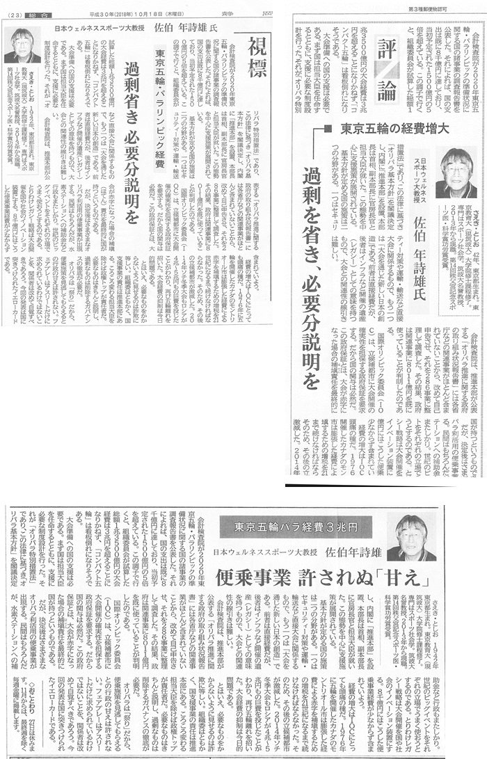 佐伯年詩雄教授のインタビュー記事(新聞各紙)