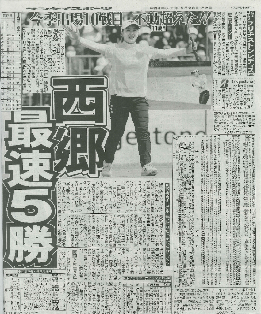 西郷さんは、次戦6月2日開幕となる全米女子オープンに出場予定。勢いのある西郷さんのプレーに期待が高まります!!