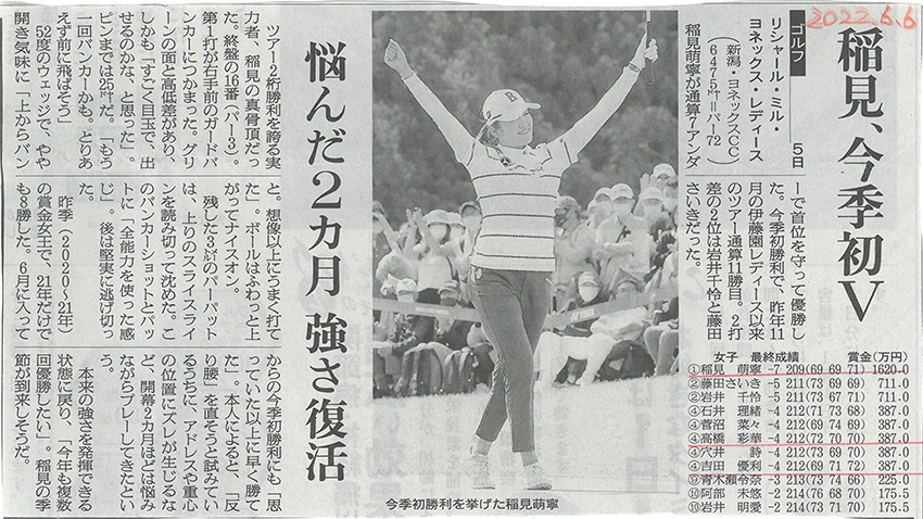 稲見萌寧さん、今季初勝利!!【ゴルフ部】
