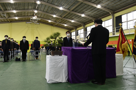 在学生からは「卒業後も時には母校を訪ね、元気なお姿を見せて下さると共に、私たち後輩を励ましたください」と送辞があり、卒業生からは「私たちに学びの場と機会を与えてくださったすべての皆様に感謝をし、明日からの人生の節目においてその都度、ここで学んだことの意義をかみ締め、一人ひとりが託された使命を精一杯果たします」と答辞がありました。