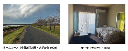大学キャンパスエリアにロードコース、寮があり恵まれた環境です。一から部を作って、ともに切磋琢磨して全日本大学女子駅伝、全日本大学女子選抜駅伝を一緒に目指しましょう。