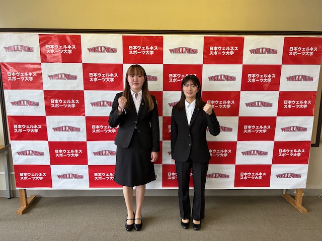 今年入学した大学女子駅伝部所属の星野輝麗(ほしのるる)さん(左)、中尾有梨沙(なかおありさ)さん(右)です。柴岡学長(タイケン学園副理事長)のもと2024年度より、全日本女子駅伝を目指すべく、陸上競技部女子長距離ブロックの強化を図ります。監督に原田兼由(東海大学卒)さん、アドバイザーに10000m元記録保持者木村泰子さんが就任。大学周辺は、自然豊かでロードコースもあり、練習環境は整っております。