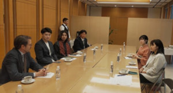 国連アカデミックインパクト活動の一環として、2024年4月22日(月)、本学教授の角田枇綸子さんと学生5名(4年田﨑清然さん、山岸茉奈さん、2年高崎大樹さん、辻大翔さん、平野陽彩さん)が、ルクセンブルク大使館(東京都千代田区)に招待されました。ルクセンブルク大使館が大学生を招待するのは初めてのことで、ルクセンブルクと日本との友好交流が実施されました。学生も初めて大使館を訪問し緊張していましたが、とてもわかりやすい英語で説明して頂き、伝統的なルクセンブルクのお菓子でお茶会を楽しみました。