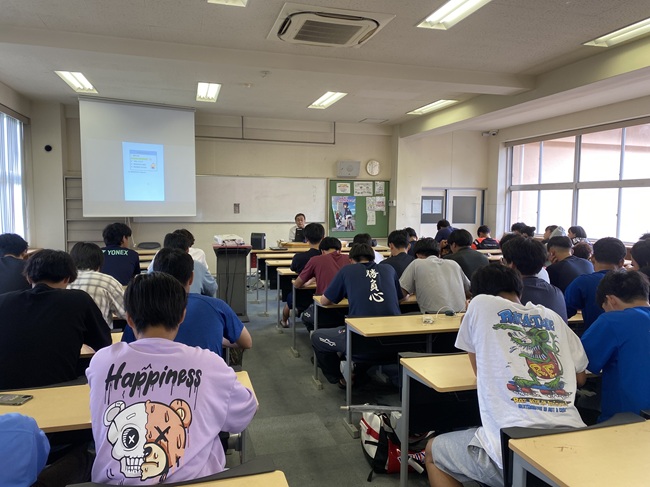 SNSやインターネットの掲示板上には、仕事の内容を明らかにせずに甘い言葉を並べた求人情報が掲載されていることがあり、このような求人は「闇バイト」かもしれない。「楽してお金が稼げるなら」と安易な気持ちで応募した結果、脅されて強盗や詐欺などの犯罪に実行役として加担させられ、逮捕されるまで抜け出せなくなる。怪しいと思ったら、絶対に応募しないでください。など、説明資料により闇バイトの仕組みや安易に個人情報を教えてしまうことの恐ろしさについてお話がありました。