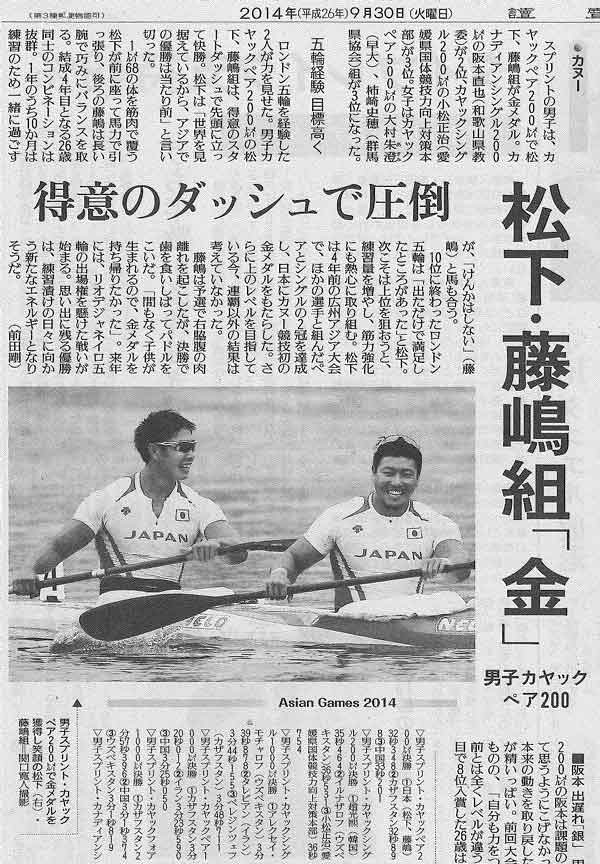 仁川アジア大会で松下桃太郎が金メダル!