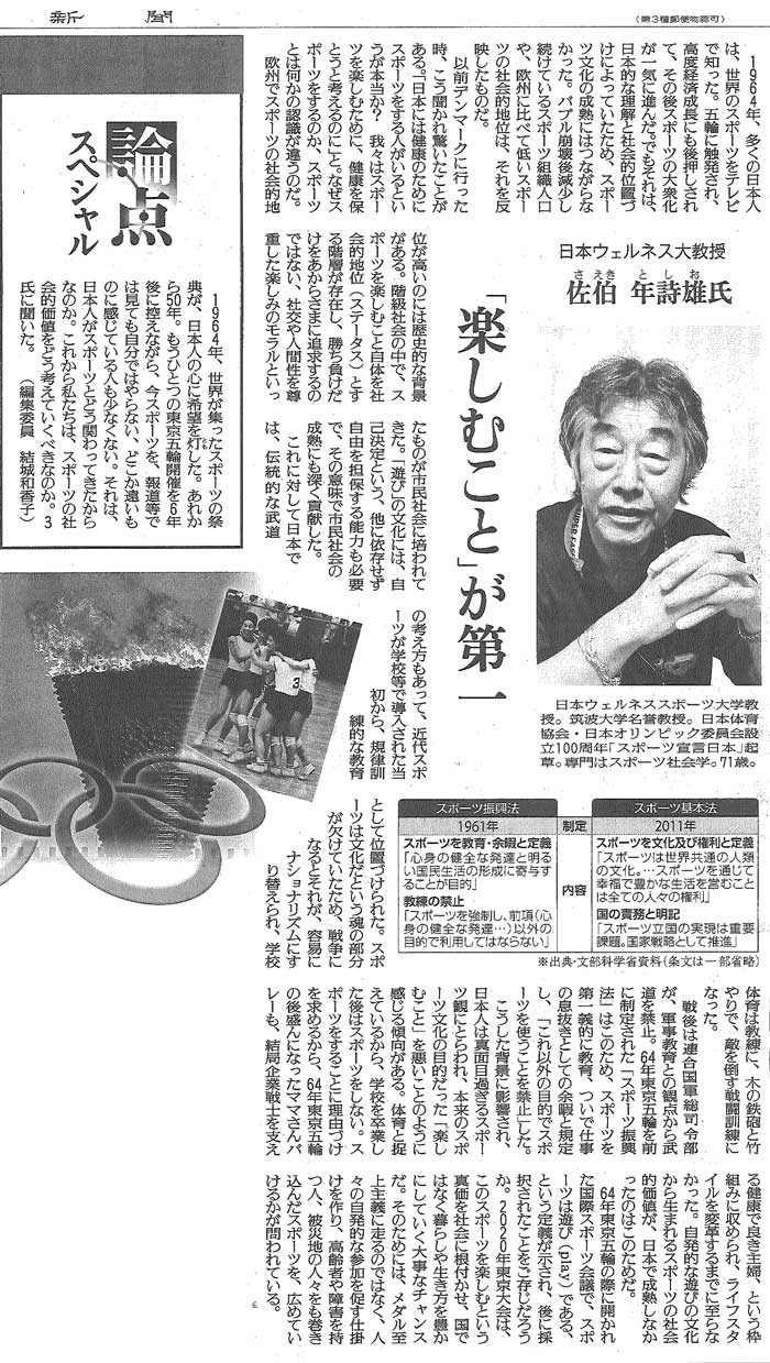 佐伯教授のインタビュー記事(読売新聞)