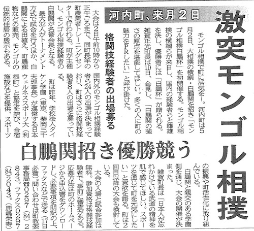 「モンゴル相撲白鵬杯」情報が新聞掲載