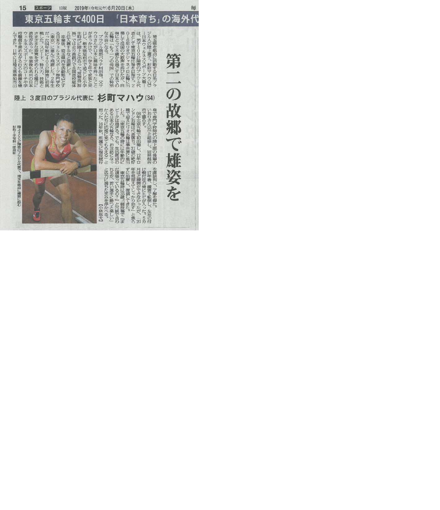 陸上競技部杉町マハウコーチの新聞記事が掲載されました